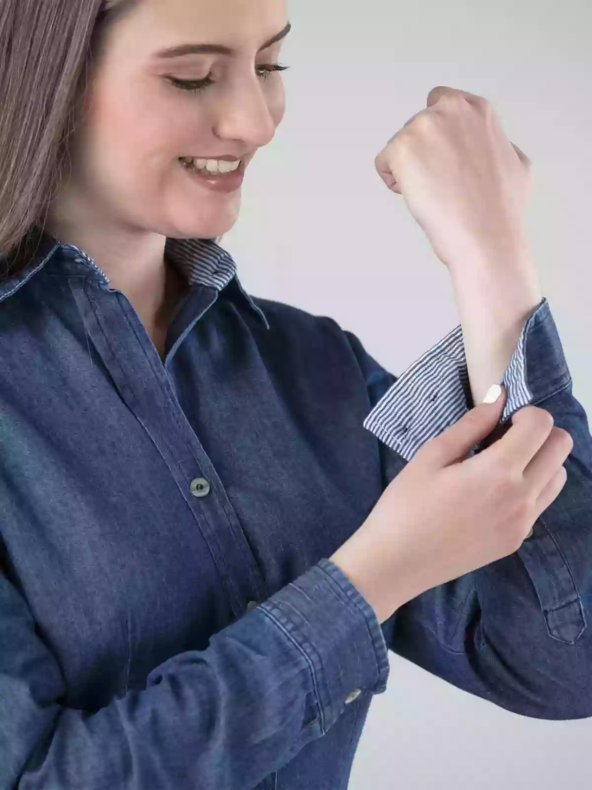 Elevate your work attire with this ultra-light denim blouse, designed for the modern professional.