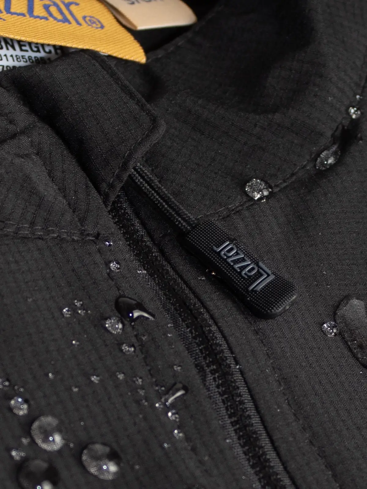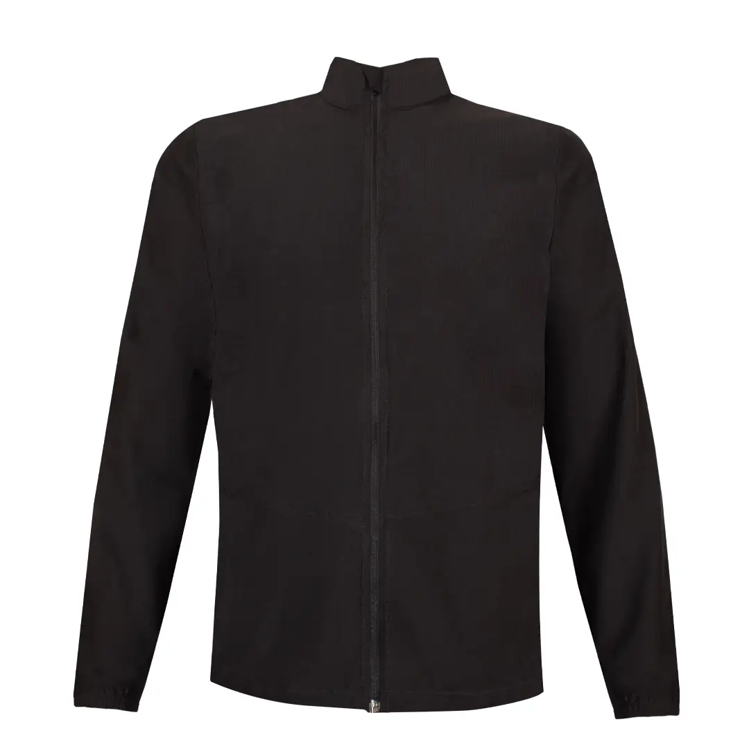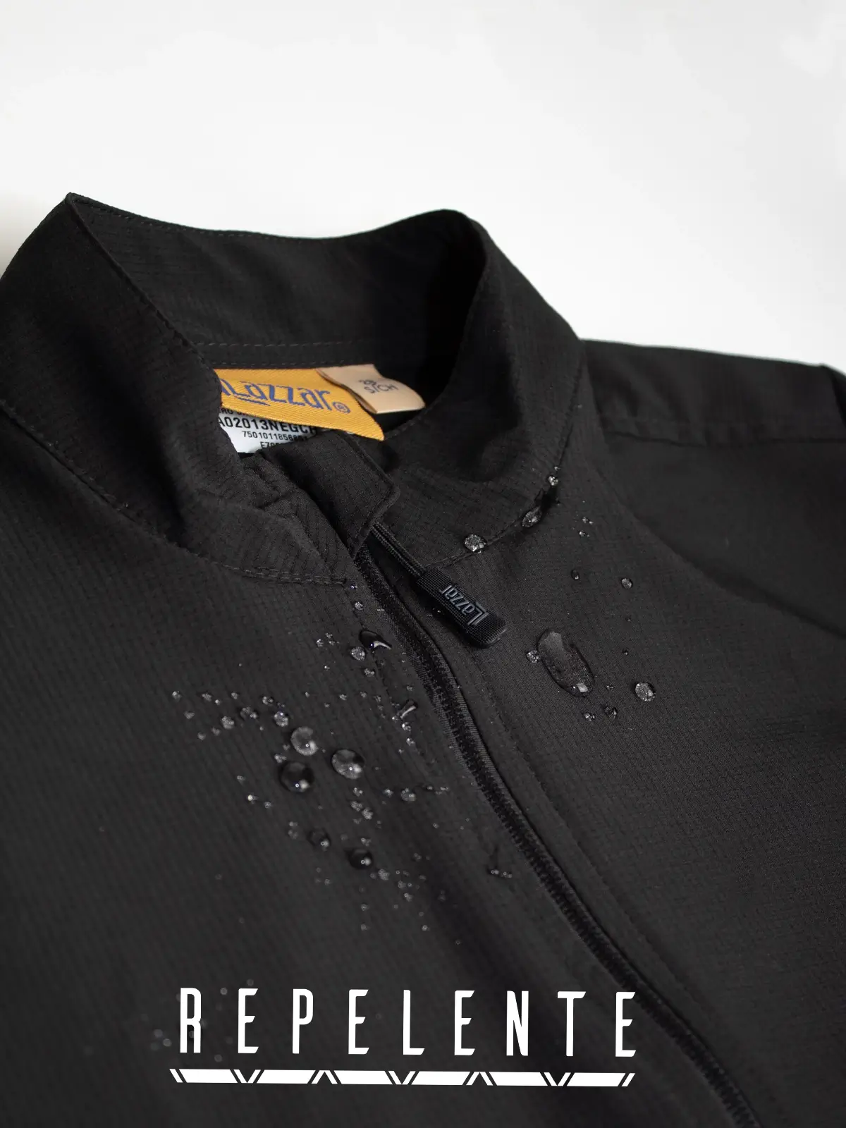 Modelo con ajuste en puños, cierre frontal y bolsas laterales, tela repelente. Disponible : Negro.