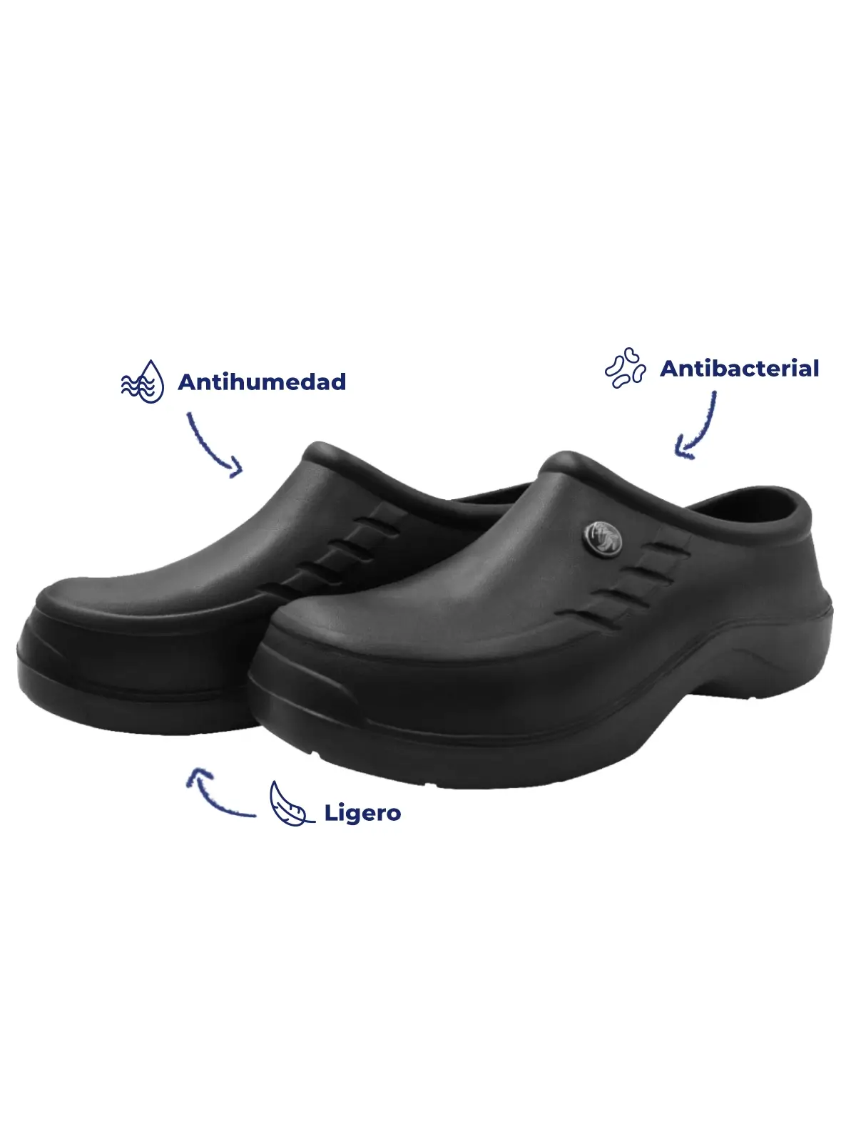 Zapato Chef Negro, con suela antideslizante, ideal para una sensación de descanso en la cocina.