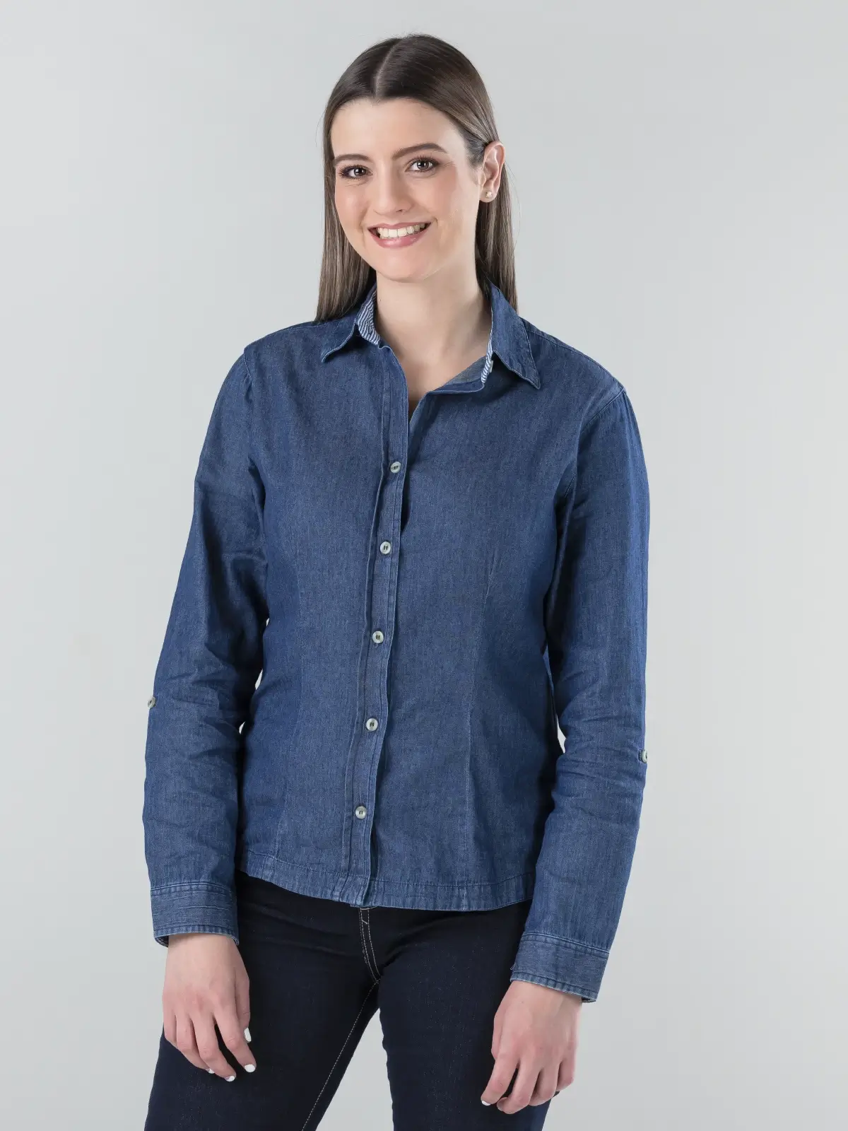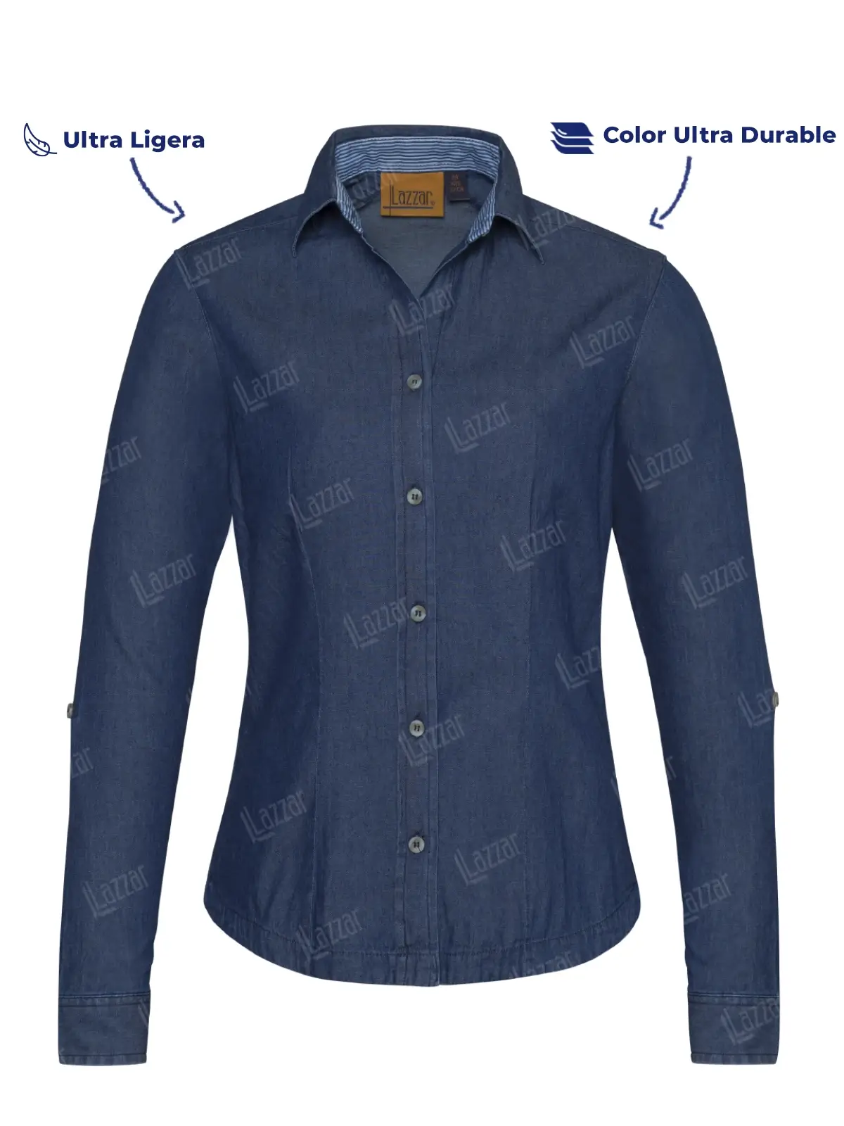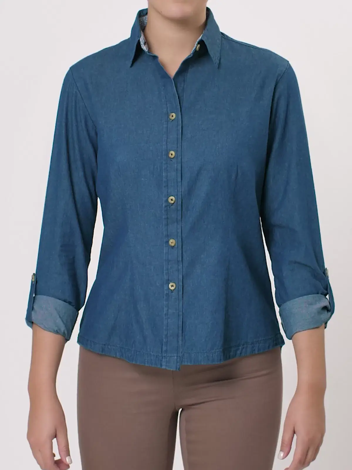 Elevate your work attire with this ultra-light denim blouse, designed for the modern professional.