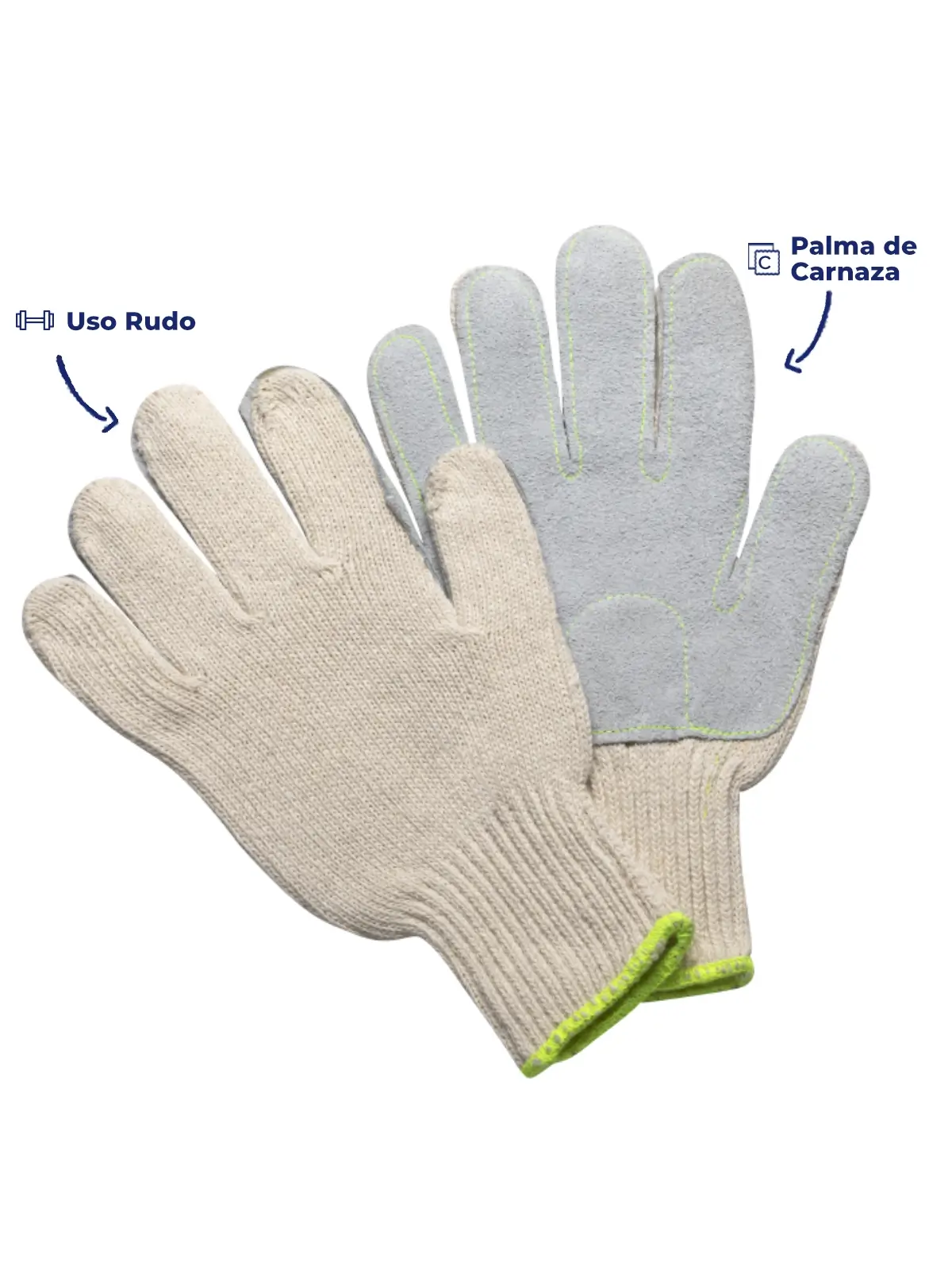 Guantes de carnaza y algodón, una combinación que garantiza durabilidad y comodidad en una sola prenda. Compuestos de 50% carnaza y 50% algodón, estos guantes son ideales para trabajadores que buscan una solución resistente y cómoda.