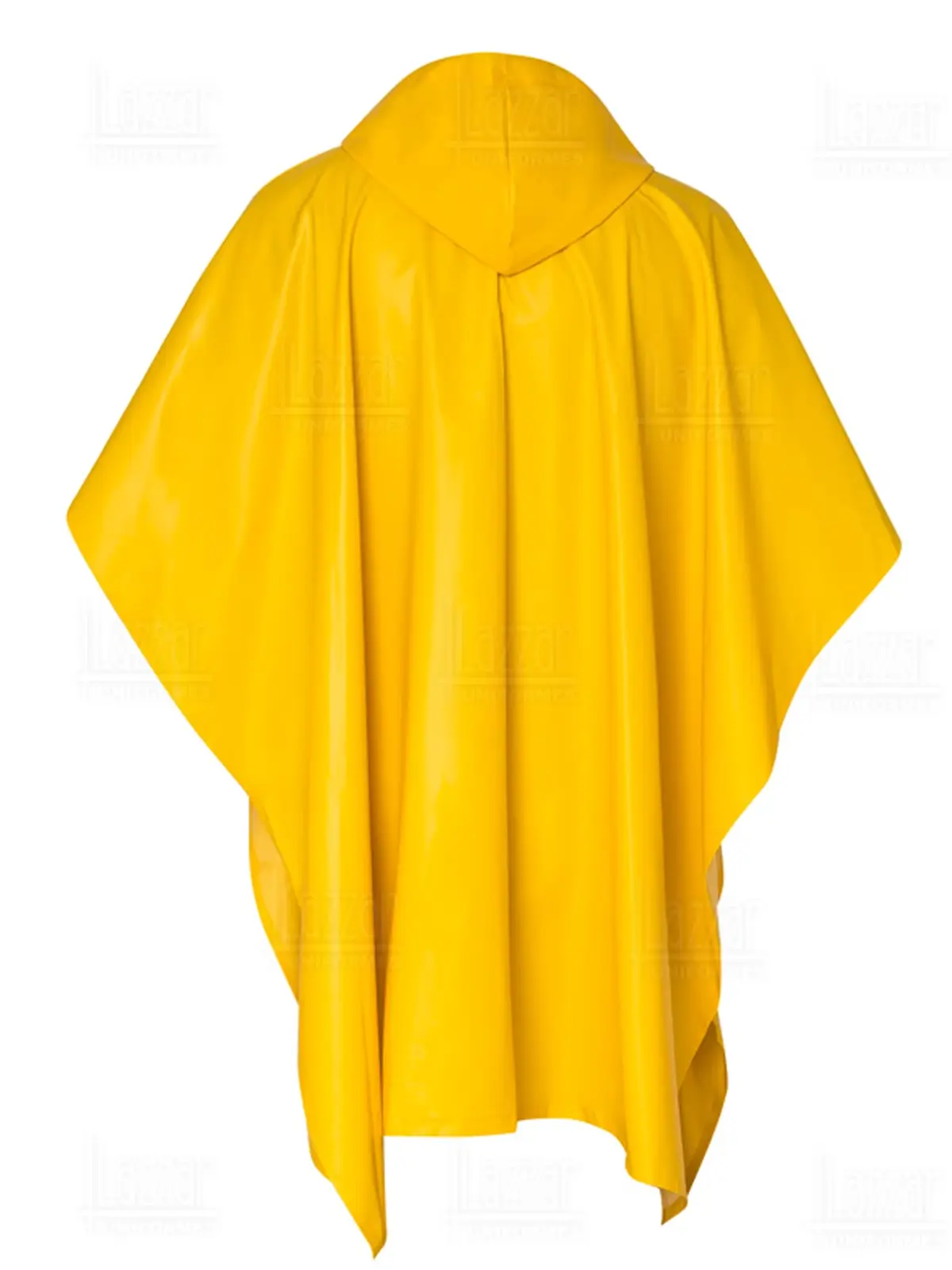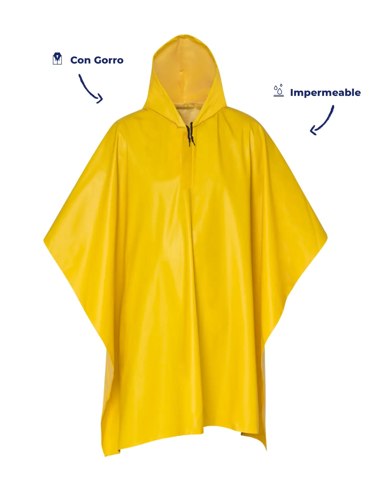 Impermeable tipo Poncho, una prenda que combina movilidad, protección y facilidad de transporte. Hecho de 100% PVC con tecnología impermeable, este poncho cuenta con broches ajustables y un gorro incluido para brindarte protección completa en cualquier clima, al mismo tiempo que te permite moverte con libertad y comodidad.