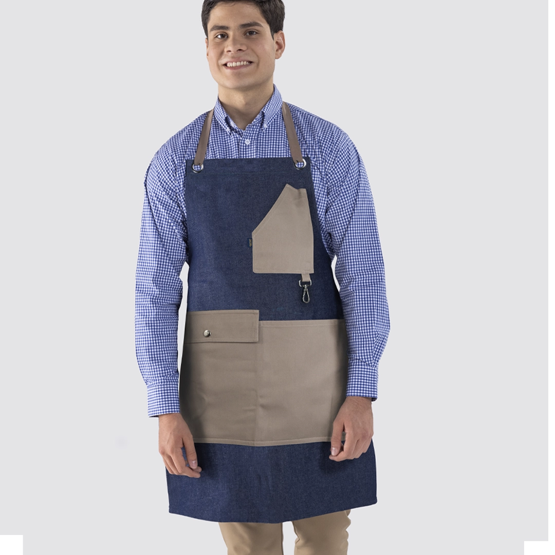 Además, el mandil de mezclilla puede personalizarse en cualquier color o combinación, adaptándose a las necesidades de tu cocina.